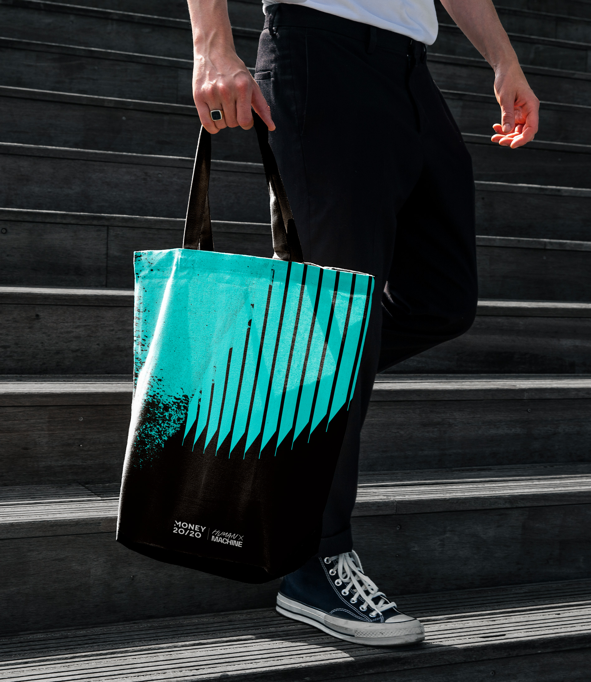 Advancements in technology and AI have fostered unprecedented productivity and creativity through the synergy of humans and machines. Our designs delve into this human-machine intersection. The identity features three core graphic elements—X, /, and 0—derived from the Money20/20 logo and wordmark. Each element embodies both human and machine aspects, represented through distinct textures and patterns. These elements combine to form a striking and captivating key visual, serving as the foundation of the visual identity.